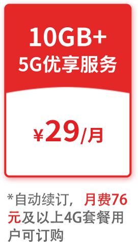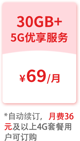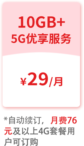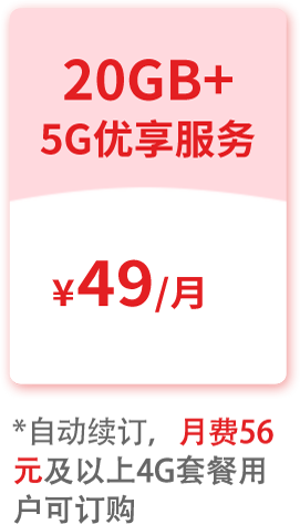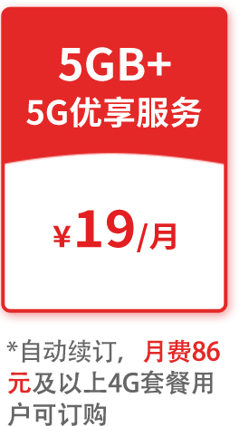 3、5G网络服务:提供5G优享服务(上行速率峰值100Mbps,下行速率峰值500Mbps)。